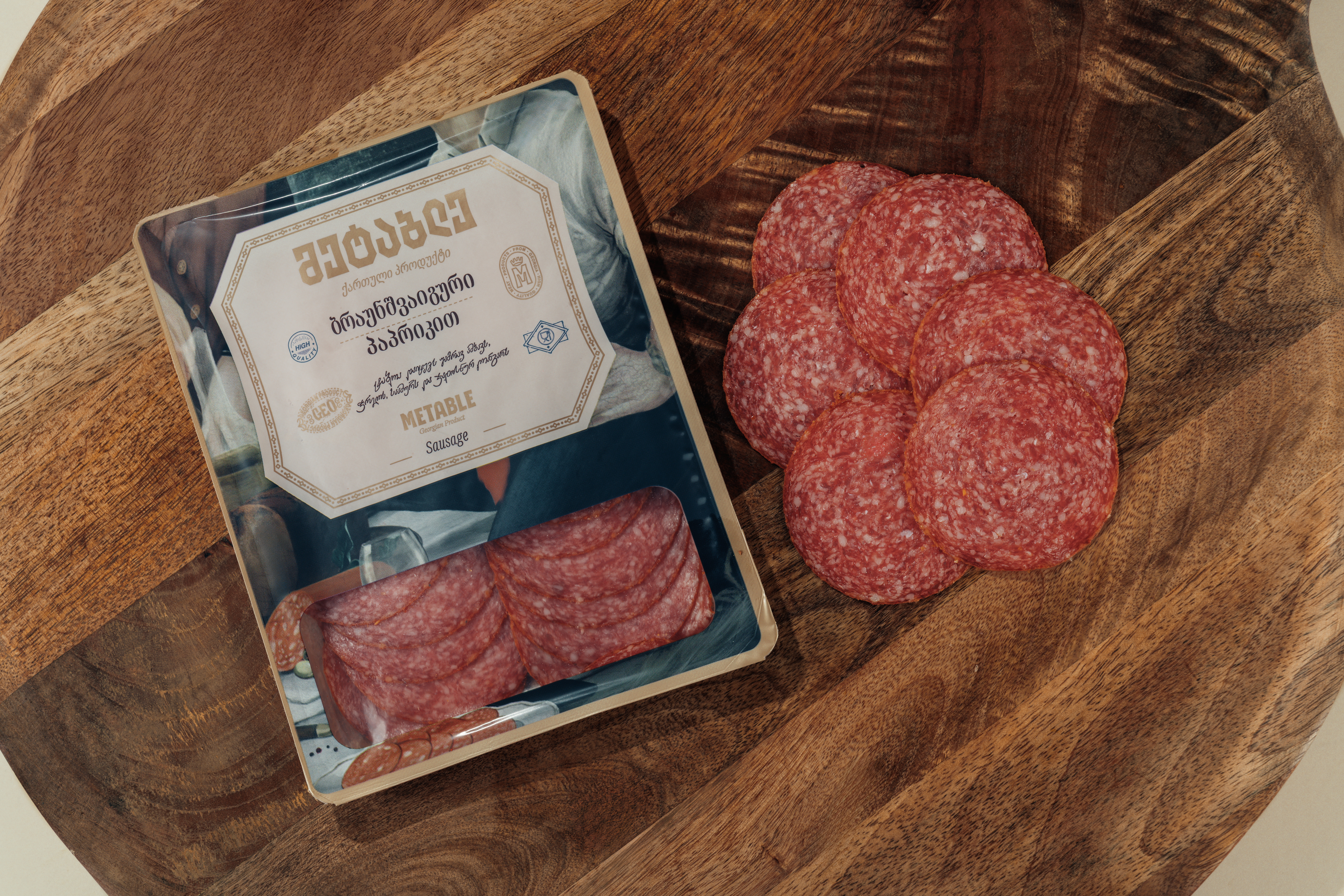 [ღორის ხორცი, ღორის ქონი, საქონლის ხორცი] – 130გ, მარილი, დექსტროზა, სანელებლები (პაპრიკა - 1გ, ნიორი, ხახვი, ქიძნი), სანელებლების ექსტრაქტები (პაპრიკა, წიწაკა), ცხოველური ცილა, ყურძნის შაქარი, მცენარეული ბალასტური ნივთიერება, სასტარტო კულტურა, სანელებლების ექსტრაქტი; გემოსა და არომატის გამაძლიერებელი - ნატრიუმის გლუტამატი; ჟანგვაწინაღი - ასკორბინმჟავა; შეფერილობის ფიქსატორი - ნატრიუმის ნიტრიტი; საღებავი - კარმინი