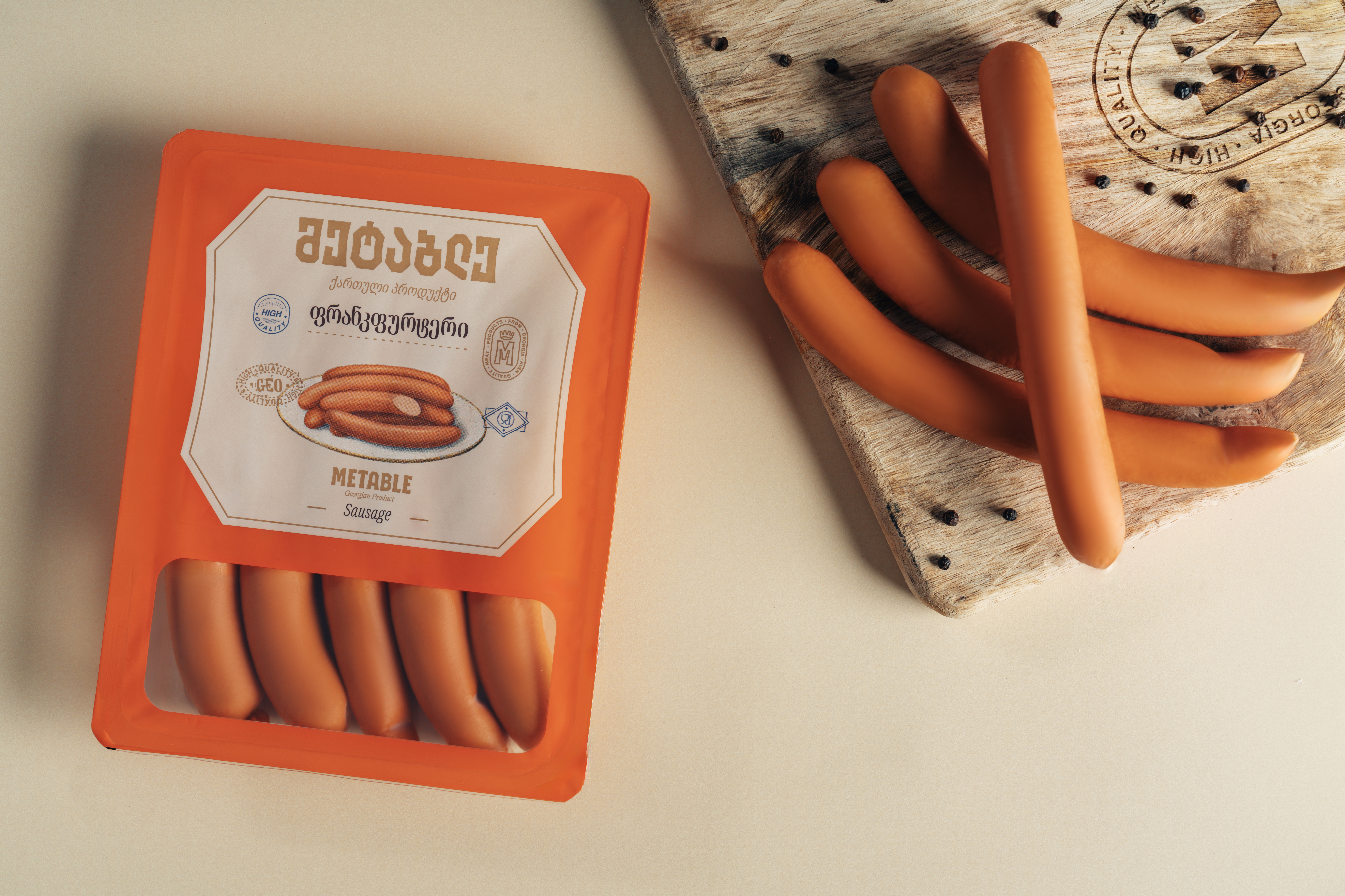 [ღორის ხორცი, ღორის ქონი, საქონლის ხორცი] – 88%, წყალი - 8%, მარილი, წიწაკა წითელი, სანელებლები (მათ შორის მდოგვი), სანელებლების ექსტრაქტები, მალტოდექსტრინი, დექსტროზა, შეფერილობის ფიქსატორი - ნატრიუმის ნიტრიტი; სტაბილიზატორი - პიროფოსფატი; გემოსა და არომატის გამაძლიერებელი - ნატრიუმის გლუტამატი; ჟანგვაწინაღი - ასკორბინმჟავა; მჟავიანობის რეგულატორი - ნატრიუმის ციტრატი; კონსერვანტი: ნატრიუმის აცეტატი და ბენზოატი; საღებავი - კარმინი