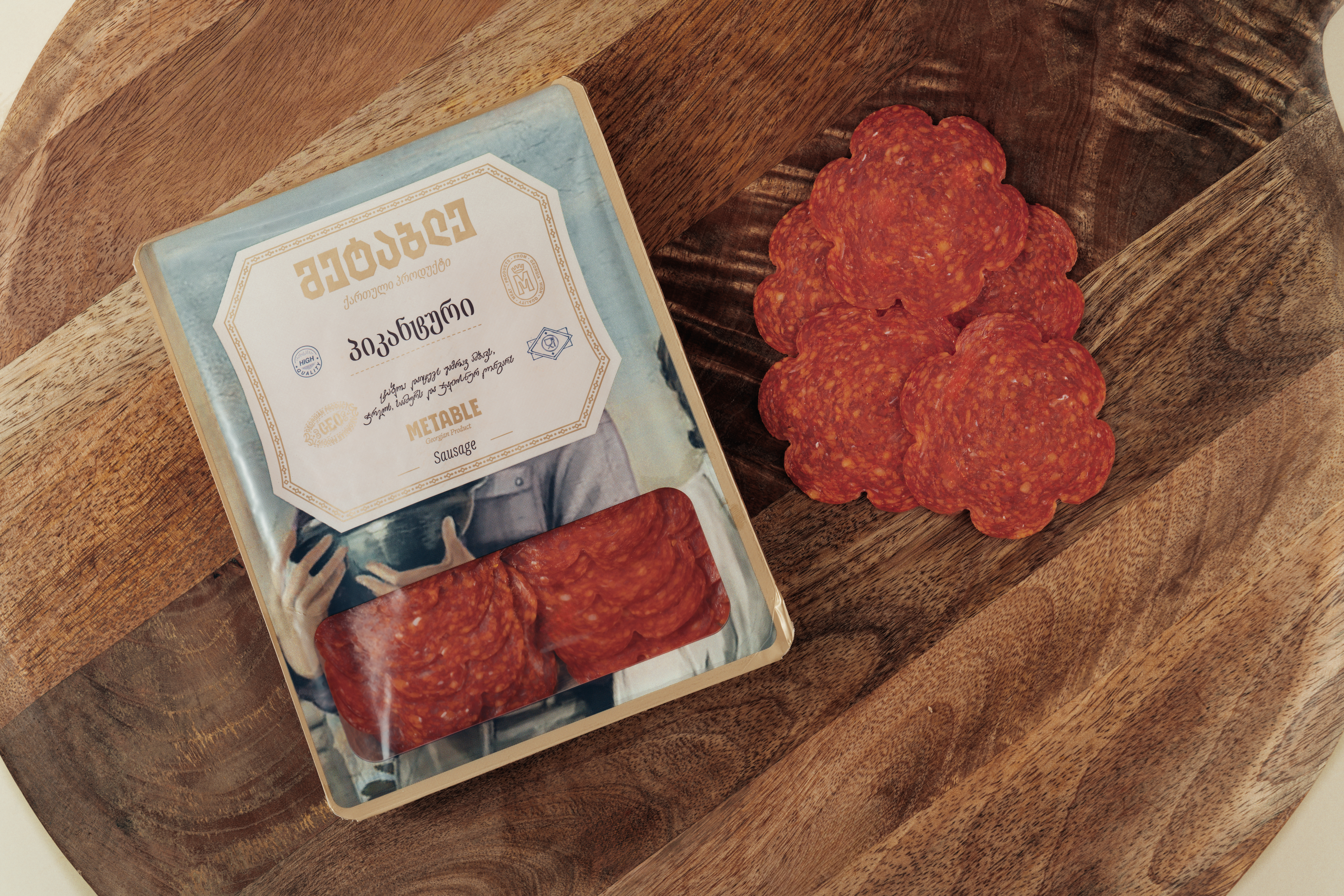 [ღორის ხორცი, ღორის ქონი, საქონლის ხორცი] – 128გ, მარილი, დექსტროზა, სანელებელი (ნიორი), საკვები უჯრედისი, სანელებლების ექსტაქტები (წიწაკა, პაპრიკა), ცხოველური ცილა, ყურძნის შაქარი, მცენარეული ბალასტური ნივთიერება, სასტარტო კულტურა, ჟანგვაწინაღი - ნატრიუმის ასკორბატი; შეფერილობის ფიქსატორი - ნატრიუმის ნიტრიტი; საღებავი - კარმინი