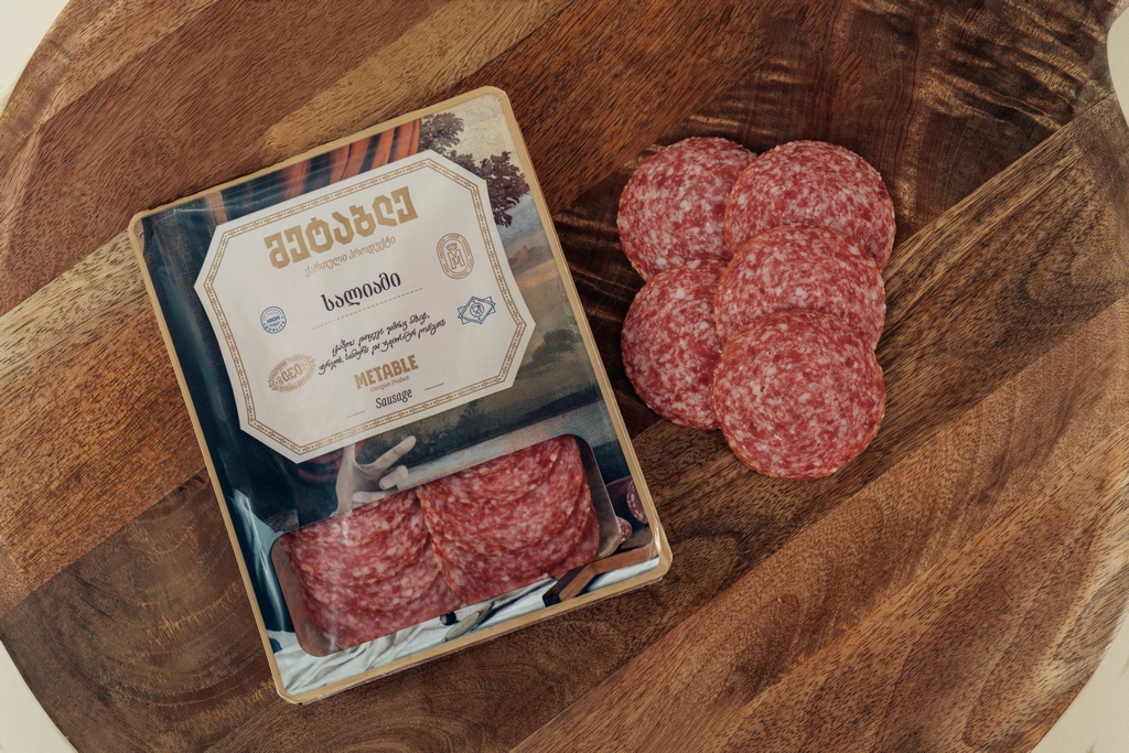 [ღორის ხორცი, ღორის ქონი, საქონლის ხორცი] – 128გ, მარილი, დექსტროზა, სანელებლები (წიწაკა, მდოგვი), საკვები უჯრედისი, სასტარტო კულტურა, სანელებლების ექსტრაქტები (მათ შორის ნიორი); ჭარხლის საღებავი; ჟანგვაწინაღი: ნატრიუმის იზოასკორბატი, ასკორბინმჟავა; შეფერილობის ფიქსატორი - ნატრიუმის ნიტრიტი